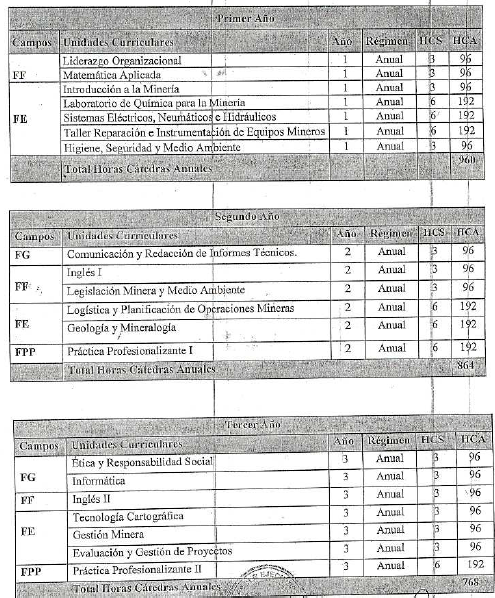 El Técnico en Procesos Mineros está capacitado, de acuerdo a las actividades que se desarrollan en el perfil profesional, para realizar e interpretar las operaciones de muestreo mineralógico y petrográfico, análisis químicos; como así también está capacitado para realizar las acciones relacionadas con el laboreo minero, participar en el proceso de tratamiento de minerales, programar, ejecutar y controlar servicio y mantenimiento minero; controlar y verificar el cumplimiento de normas ambientales y de higiene y seguridad; comercializar, gestionar y/o participar en emprendimientos vinculados con áreas de su profesionalidad.